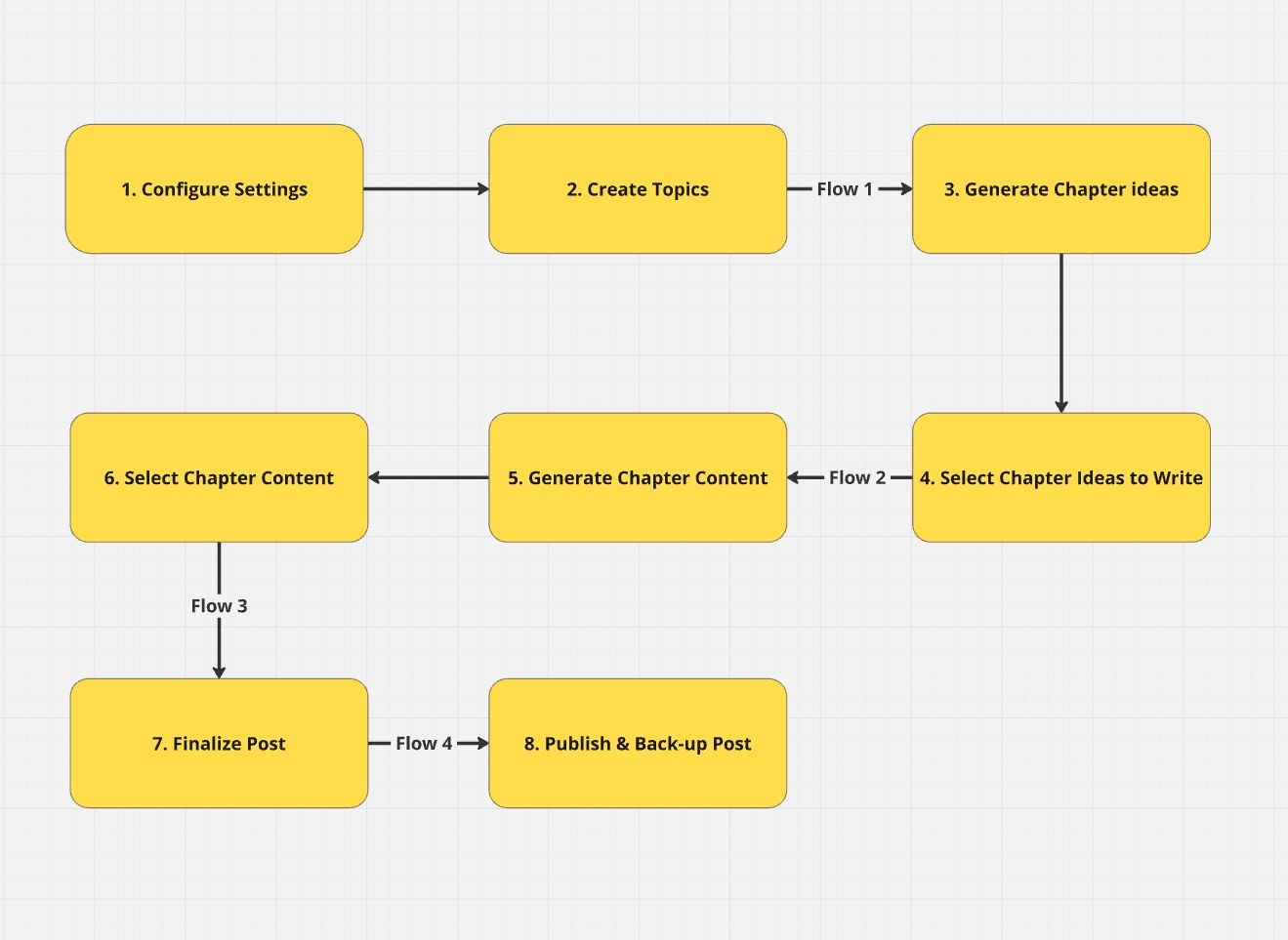 - Flow 1 (Topic Initiation & Chapter Generation):